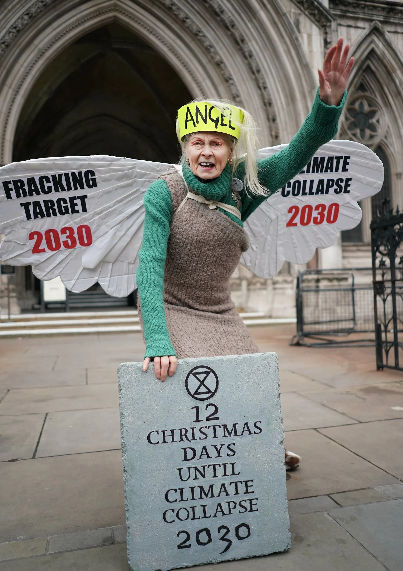 Royal Courts of Justice, London, 18 December 2018. Westwood outside the Royal Courts of Justice on The Strand to protest in support of the ban on fracking, a decision later overturned following a legal challenge by her son Joe Corré. Photo: Ki Price